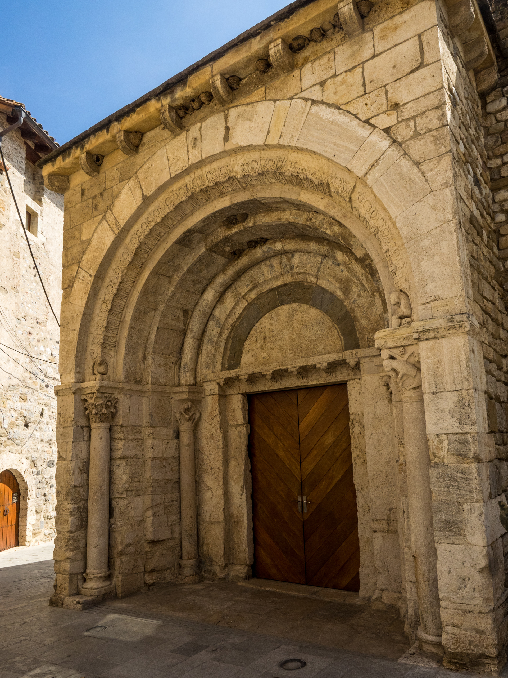Главная площадь и собор Сант-Пере-де-Бесалу. В этот день был праздник, в соборе шла служба, так что зайти туда нам не удалось.