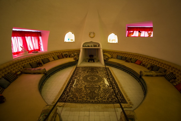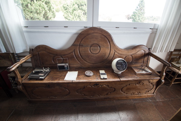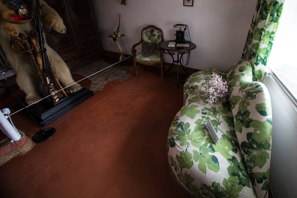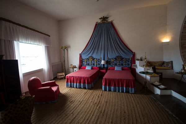 А из гардеробной маленький коридор ведет в "Овальную комнату": помещение, выстроенное по форме панциря морского ежа с двумя небольшими окнами. Это была такая пещерка уединения для Галы, она тут проводила немало времени. У этой комнаты есть очень интересный эффект: даже тихое слово, произнесенное в этой комнате, отражается от стен и заметно усиливается.