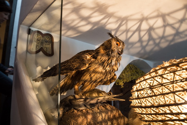Наверху на стеллажах - чучела трех лебедей, когда-то плавающих в заливе. Дали лебедям надевал колпачки со свечками, которые красиво светились во тьме до того момента, пока лебеди не опускали голову в воду, чтобы схватить рыбку. История умалчивает, в какой момент из лебедей сделали эти чучела.