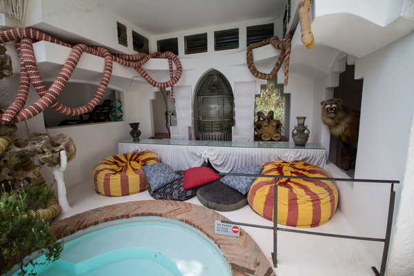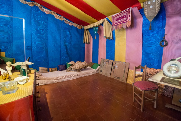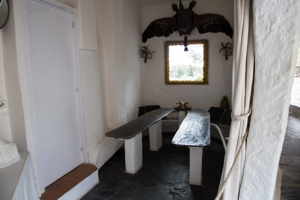 Темное помещение радом с мастерской, очень причудливо декорированное. Здесь стоит столик, за которым Дали работал над ювелирными украшениями.