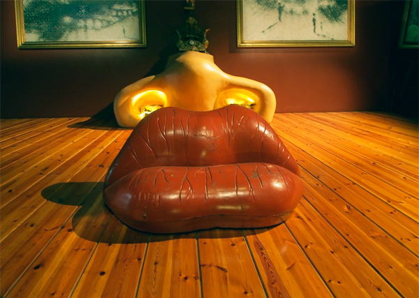 Диван в форме губ, шины Pirelli, фигурки писающих матадоров - все это вполне в стиле Дали.