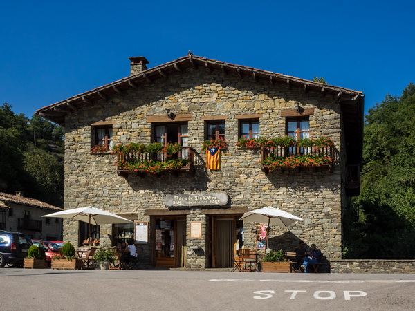 Эль-Фар (El Far) находится вот здесь, недалеко от Бесалу. Это святилище, построенное в XII веке на краю крутого обрыва на высоте 1123 метра. Сейчас там расположен небольшой монастырь с часовней. В древние времена путники могли получить в этом монастыре приют на ночь, стакан вина и кусок хлеба, а сейчас путники могут получить приют на ночь в современном отеле всего за €182. С вином, хлебом, хамоном и самыми разнообразными блюдами тут также все в порядке: здесь находится ресторан с несколькими залами, где очень приличные кухня и обслуживание, а цены вполне разумные для такой высоты.