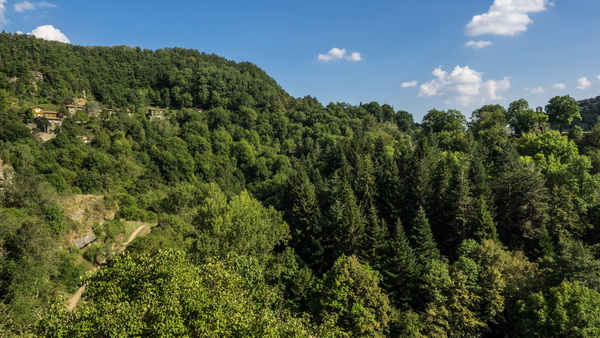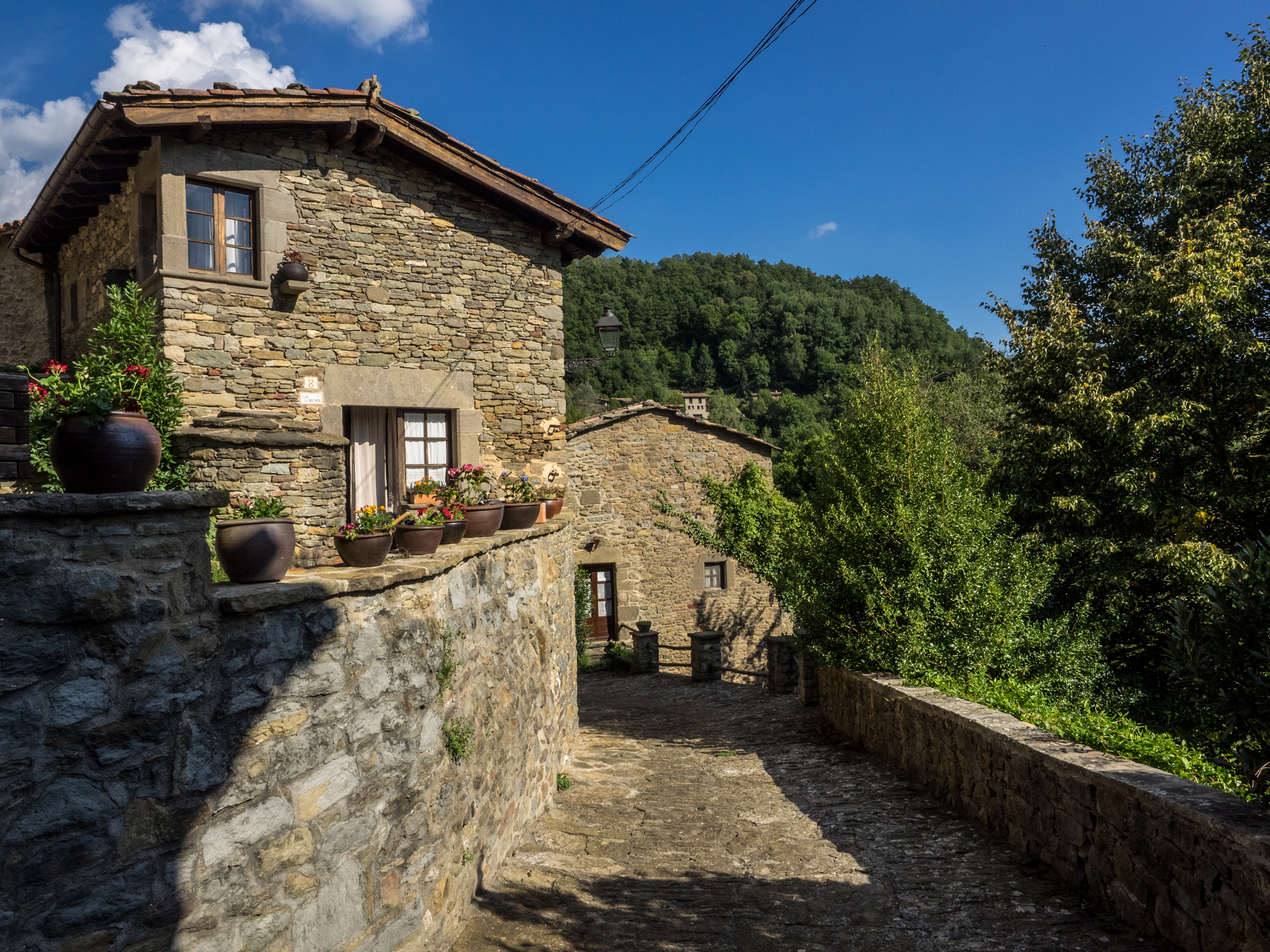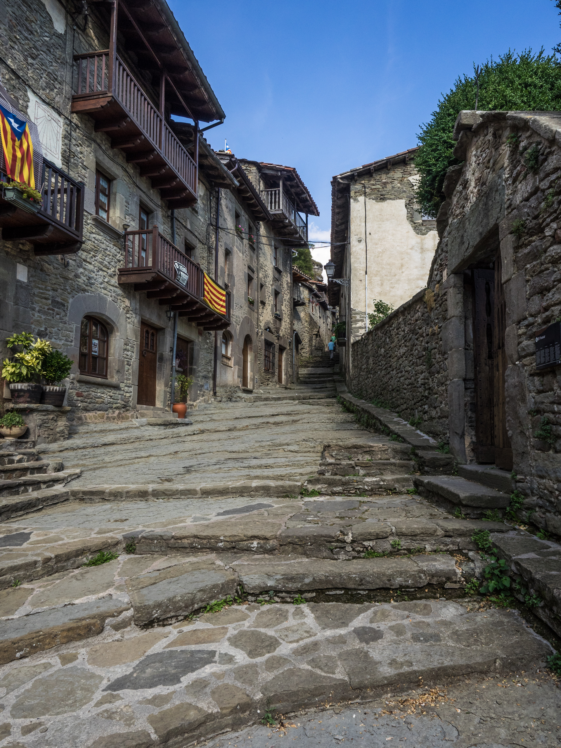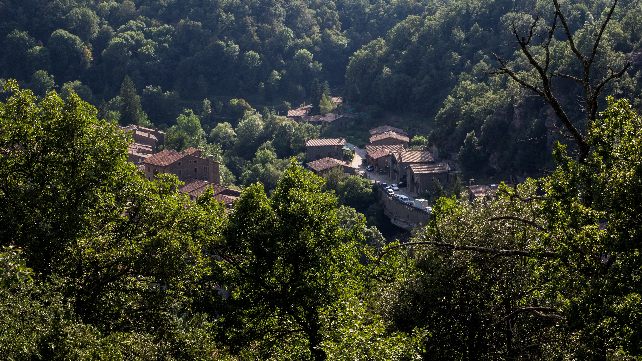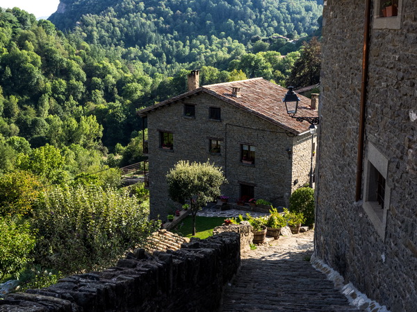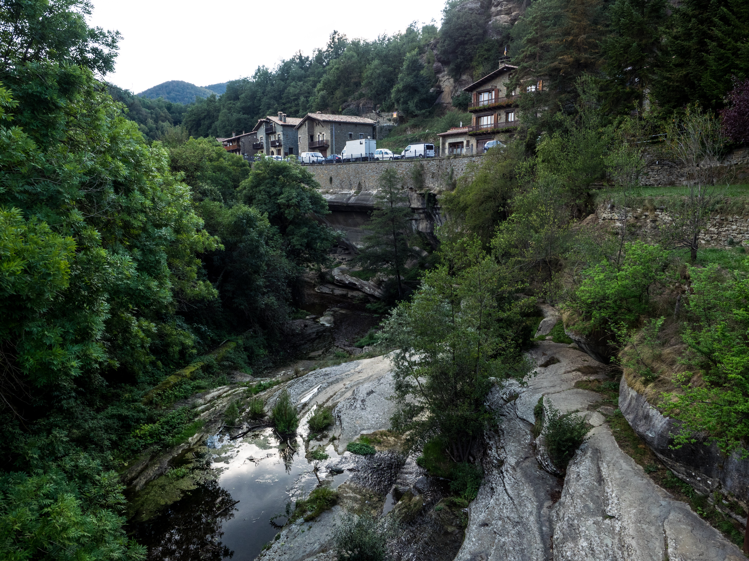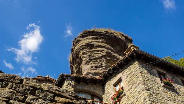 Полностью название города звучит как Рупит-и-Пруит (Rupit i Pruit). Он расположен на базальтовой скале, на высоте порядка 800 метров. Примерно 11 тысяч лет назад здесь был вулкан, который извергался-извергался, ну и в результате образовались скалы с ущельем. Вот на этой окаменевшей лаве и расположен город Рупит.