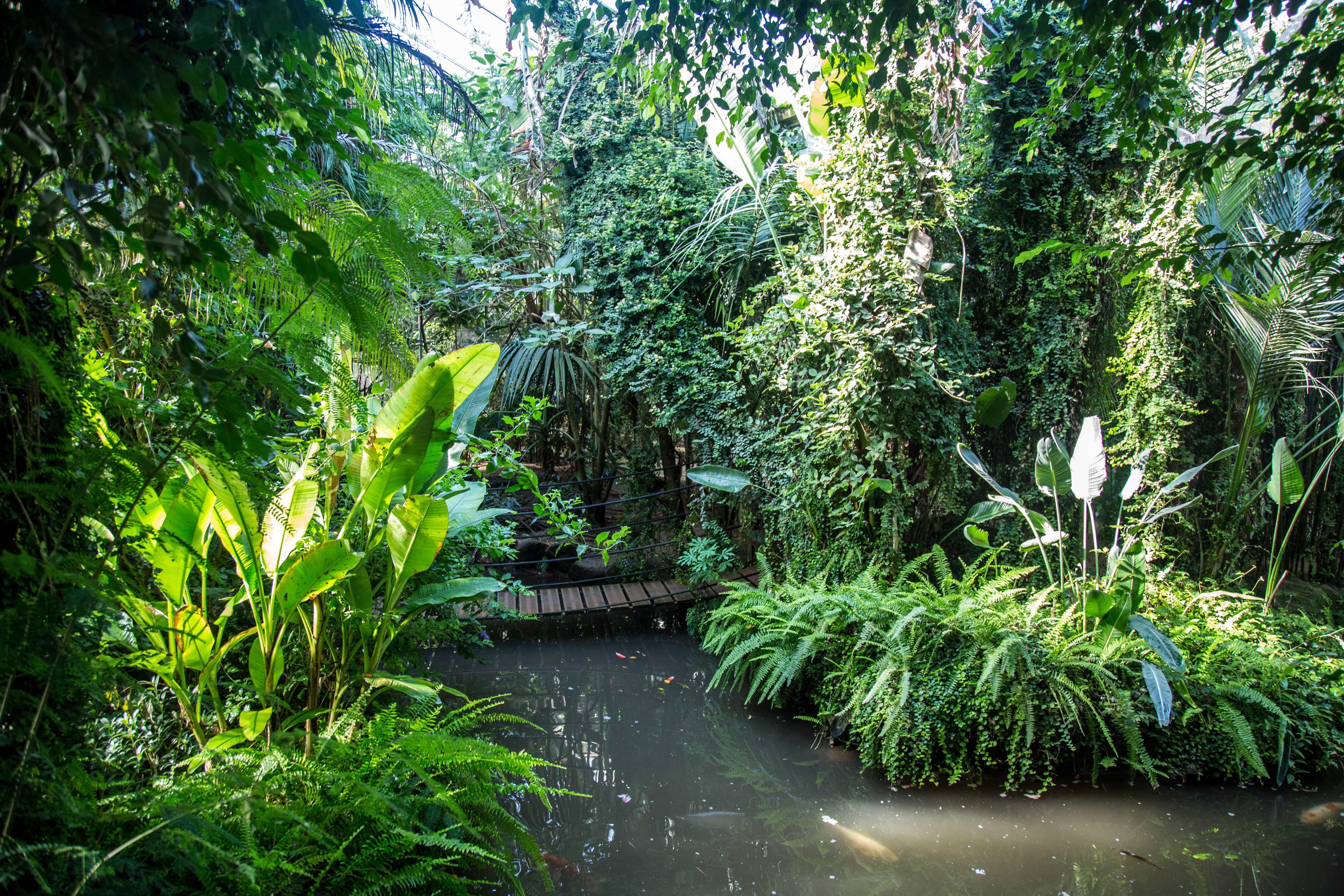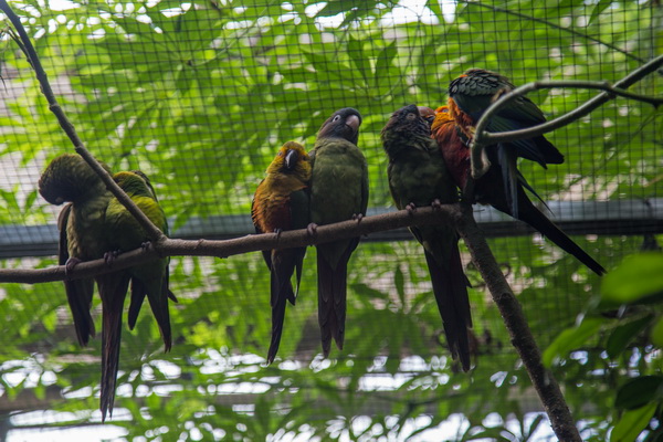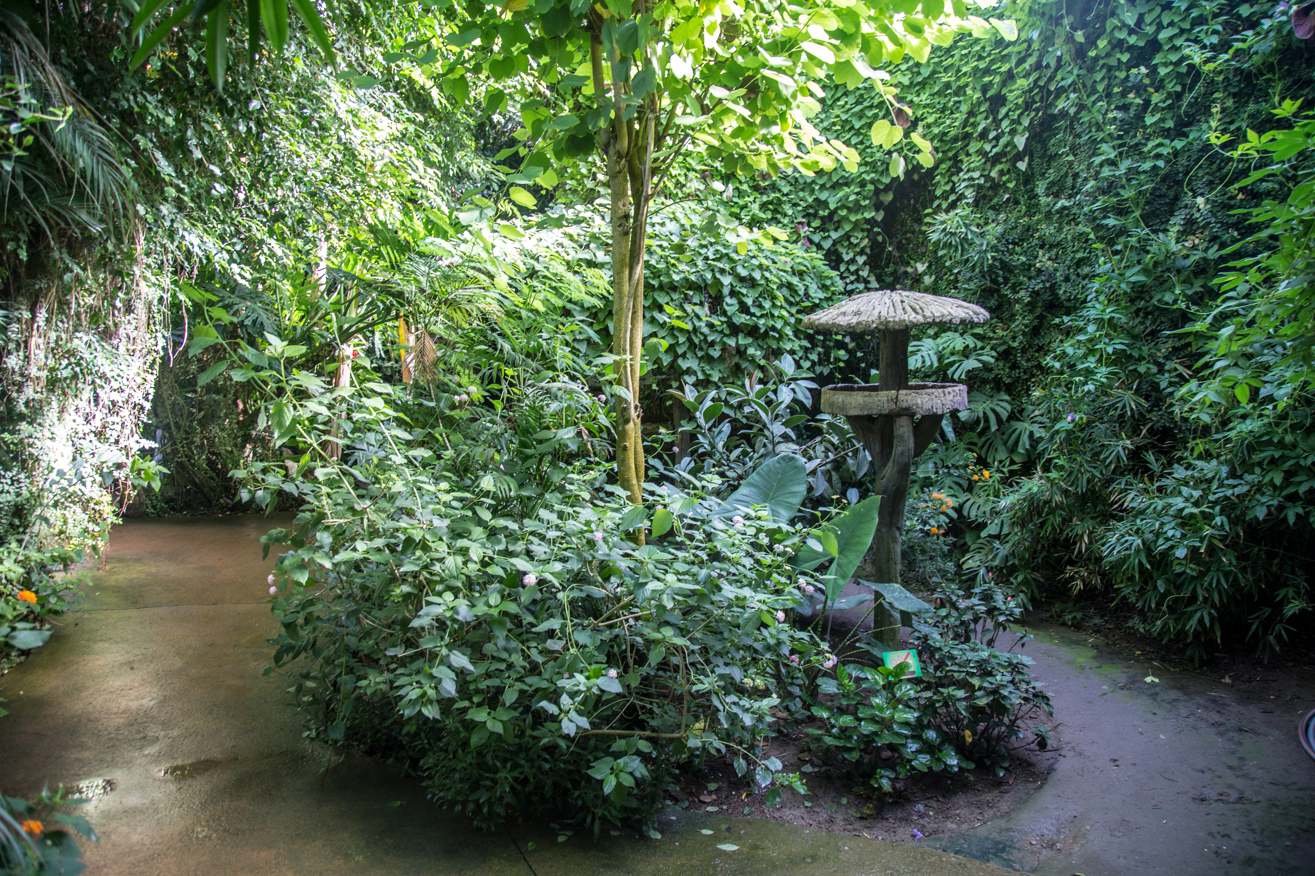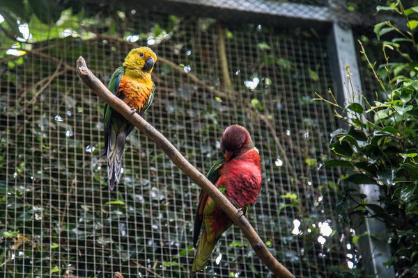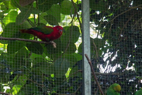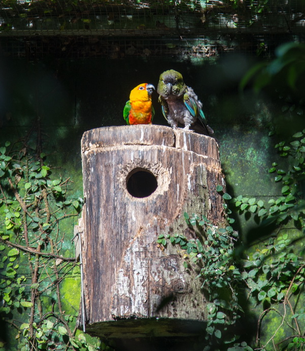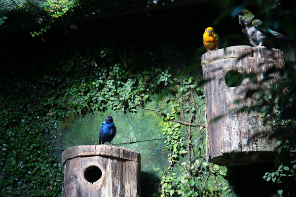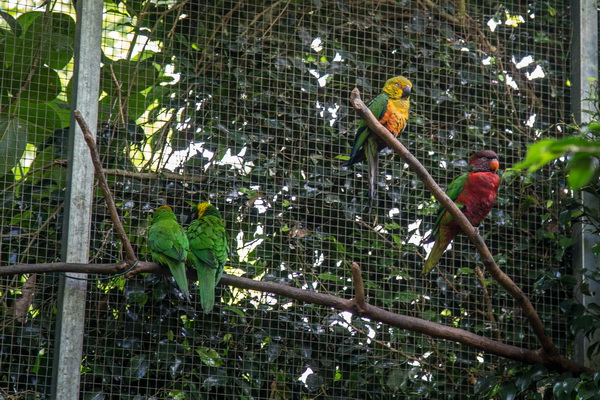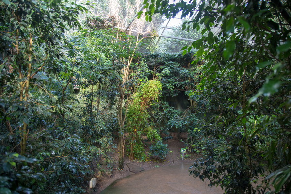 Что собой представляет этот парк? Территория примерно в тысячу квадратных метров превращена в тропический лес. Это закрытая территория, нечто вроде огромной теплицы со своей экосистемой. Тут всегда плюс 28 градусов и влажность 80%. Парк разделен на три основные секции: попугаи, животные, бабочки. Также на территории находится грот с летучими мышами.