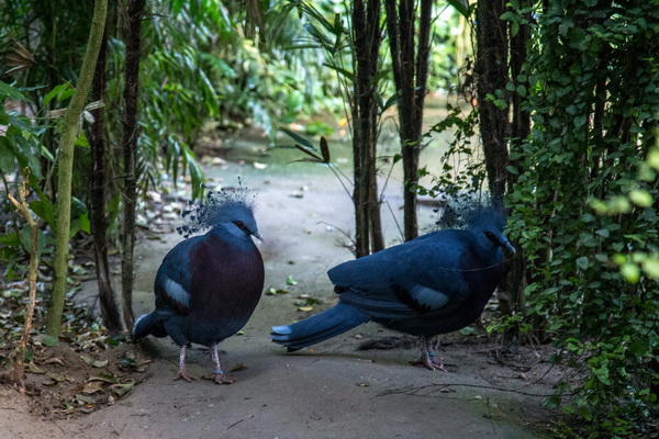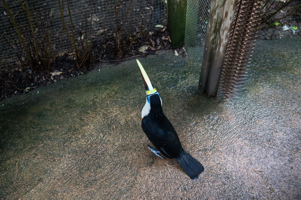 Как и все остальные птицы и животные парка, он - совершенно непуганый. Может наступить вам на ногу, может пихнуть или толкнуть. И удержать тукана, который, например, решил пройти в отделение к бабочкам или к индийскому мунтжаку (это олень такой), невозможно совершенно.