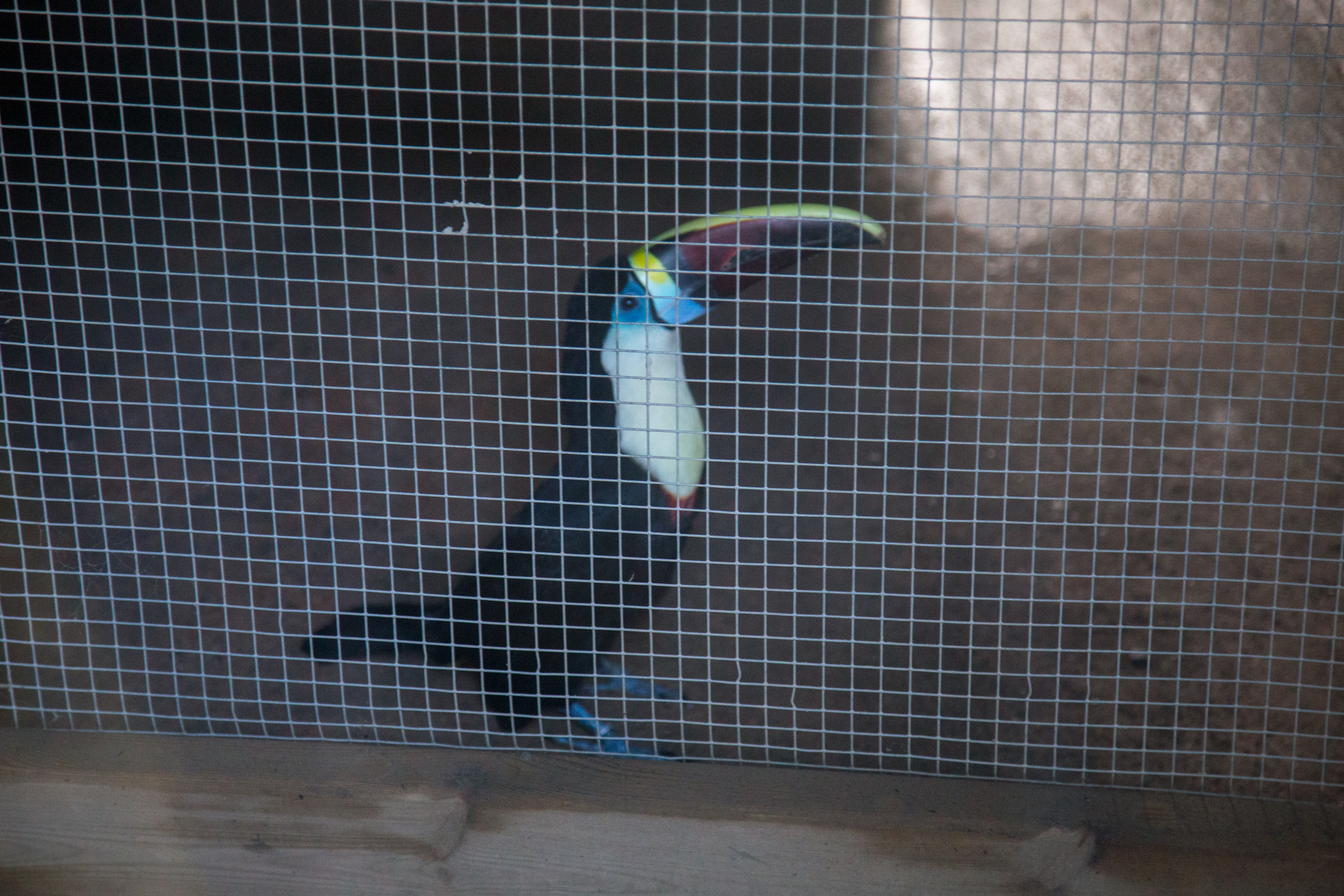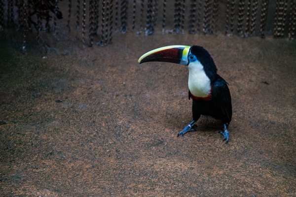 Тукан уже находился не там, где ему полагалось, - мы были за пределами отделения для птиц. Но, видимо, тукан тут ходит, где хочет, и удержать его на самом деле невозможно.