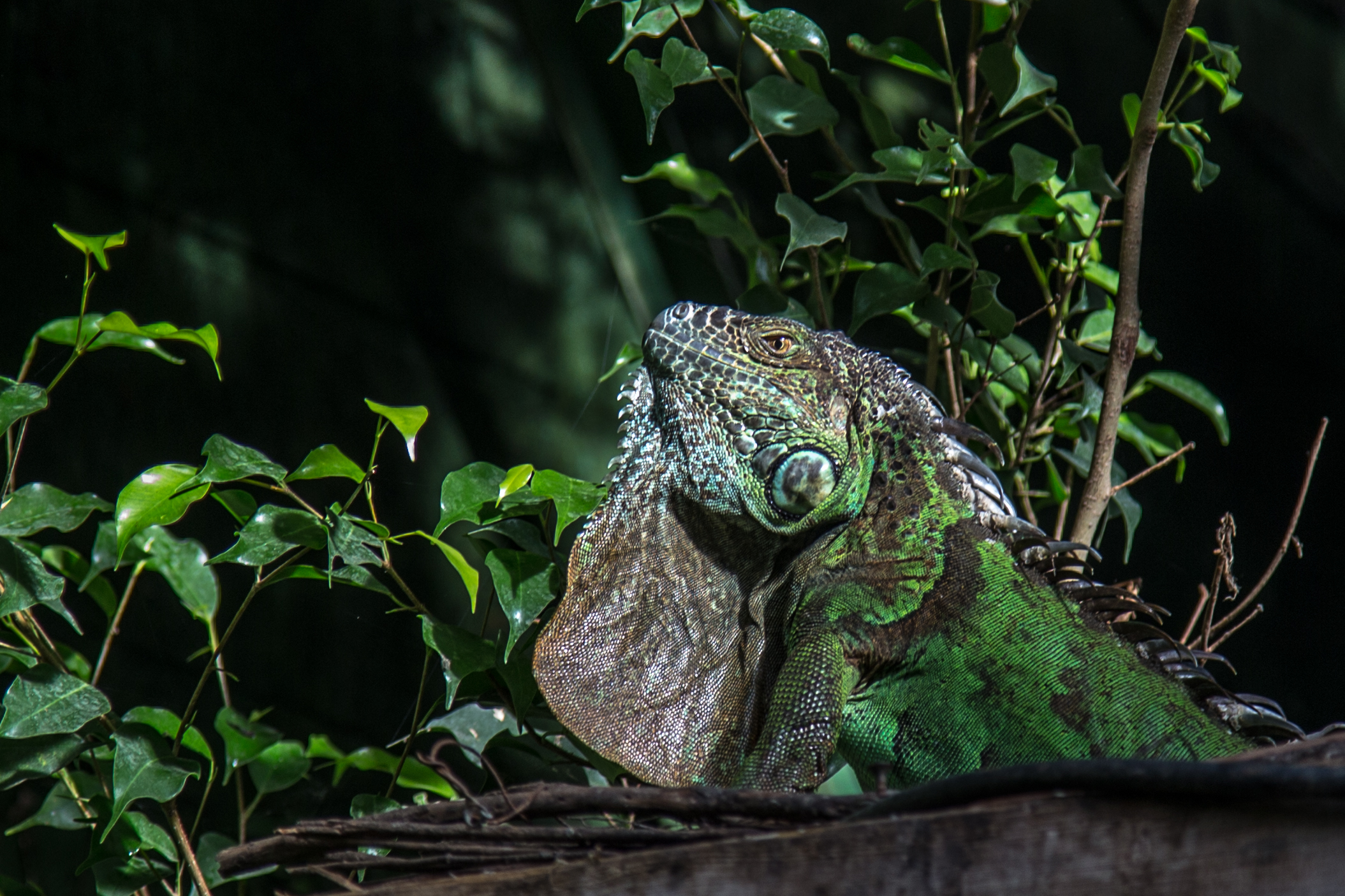 Игуана греется на солнышке.