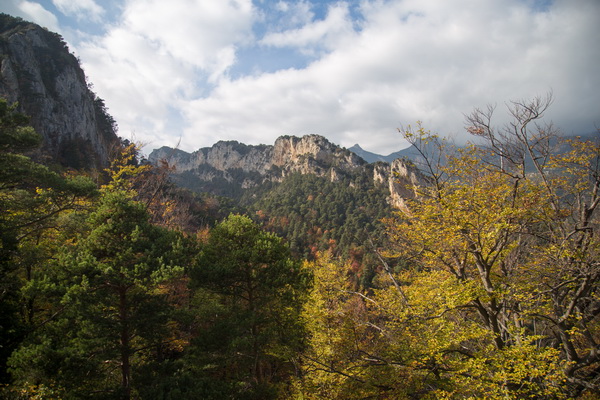 Прям от парковки - вот такой вид на горы и осенние леса.
