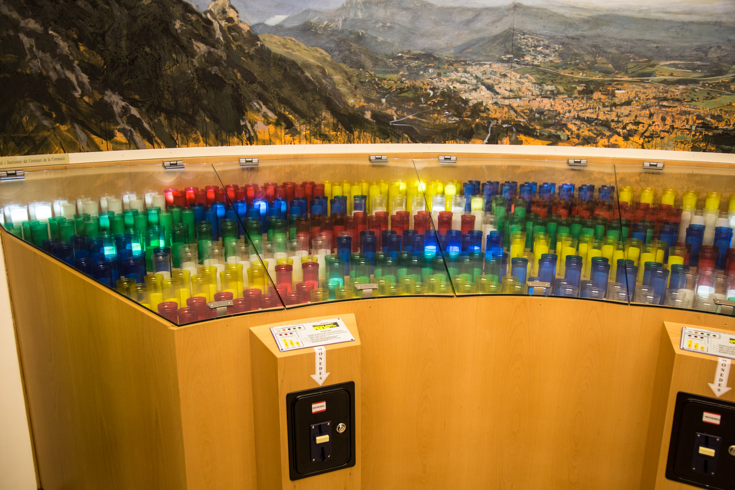 Чудесная поповская хохма с современными технологиями. Раньше брали свечки за еврик, а теперь - все очень круто! Стоит большой агрегат для выжимания денег: можно выбирать разные цвета и задавать количество дней "горения". Действие, разумеется, совершенно бессмысленное, но на получаемые от всего этого деньги можно купить "Мерседес" отцу настоятелю. Впрочем, врать не буду, вполне возможно, что в данном случае деньги могут тратиться на дальнейшую реставрацию.