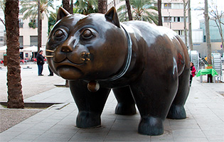 К отелю нас доставили на двух такси. Гостиница стояла на краю живописной площади, в центре которой красовался огромный округленный металлический кот – это была такая скульптура. Туристы коту натирали известно что, так что кот своими достоинствами сверкал на всю Барселону. И усами он тоже сверкал – усы натирали те туристы, которые не хотели стоять в очереди к достоинствам.