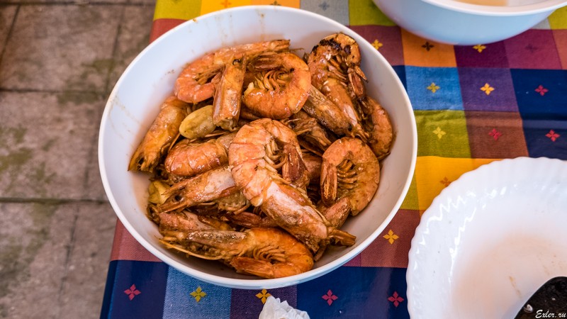 После этого креветки убираются в миску, чеснок из масла вылавливается и выкидывается (иначе будет гореть).
