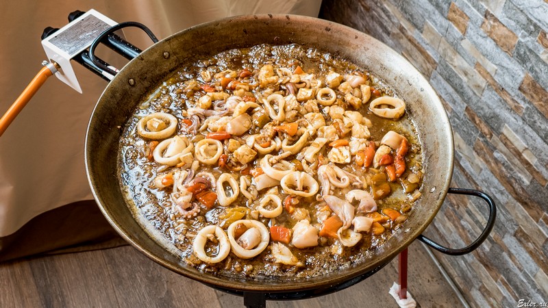 Каждый может сделать свой любимый вариант паэльи, чем это блюдо и хорошо: оно оставляет большой простор для творчества. Тут главное - взять правильный рис, четко рассчитать максимальное количество, рис не мыть и не замачивать, после распределения риса по дну паэльеры - ни в коем случае не перемешивать.