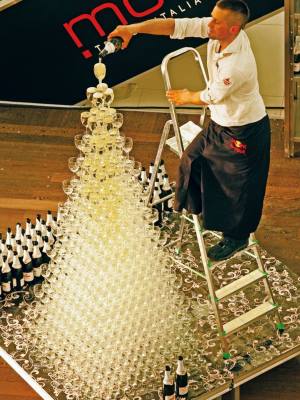 Здесь как раз будет уместно поговорить о видах бутылок для шампанского. А их, между прочим, существует аж 14 разновидностей. Конечно, подавляющее большинство используемых бутылок - стандартные, на 750 миллилитров. Также нередко попадаются "Магнумы" (Magnum) - 1,5 литра (2 стандартных бутылки). Бывают также бутылки 350 мл (половина, Demie), и большие трехлитровые "Иеровоам" (Jeroboam) - 4 стандартных бутылки.