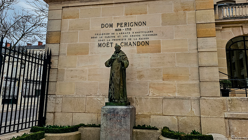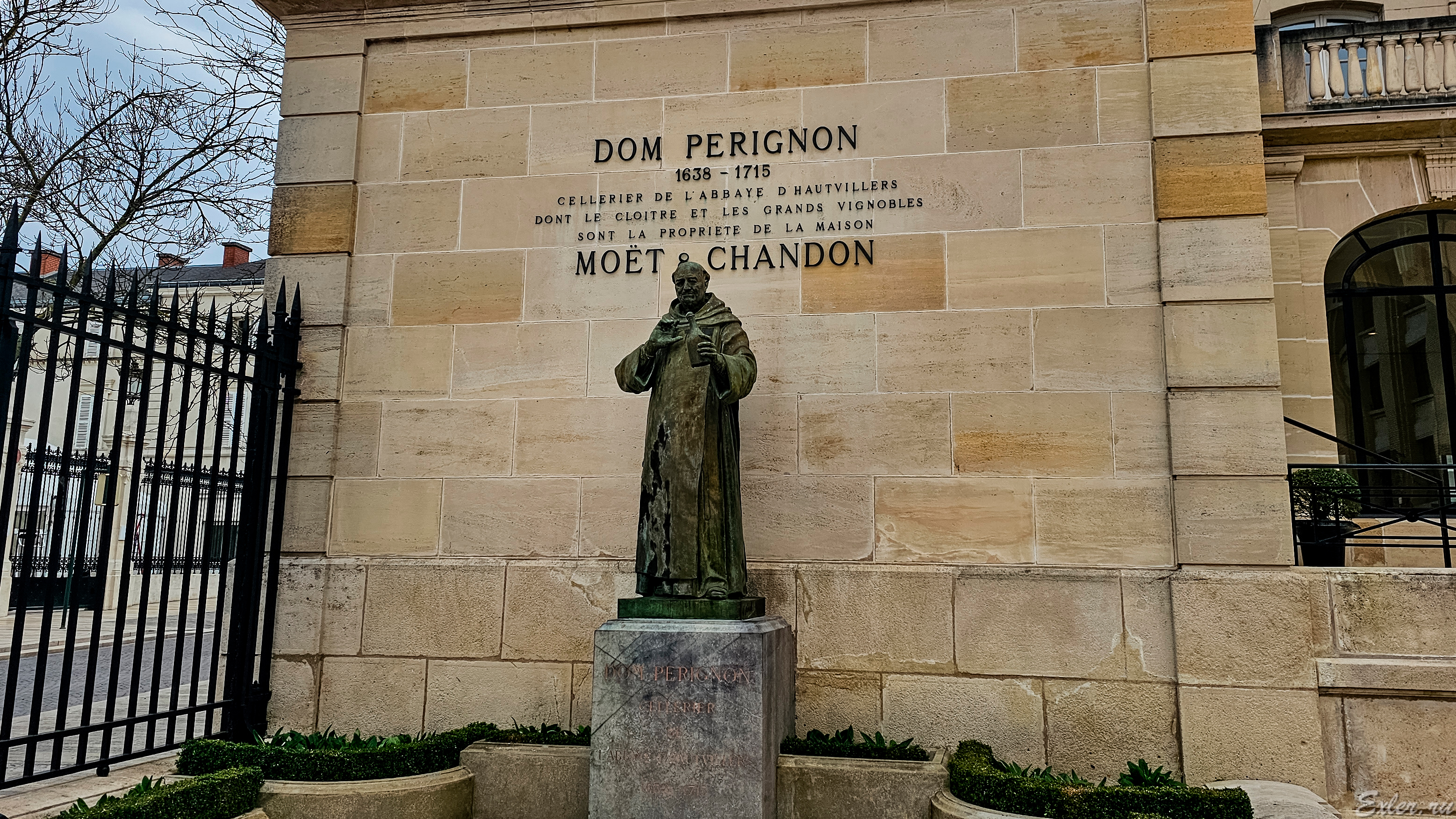 Памятник Дому Периньону, установленный у здания Moët et Chandon в столице Шампани городе Эперне