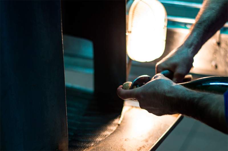 Раньше этот процесс производили исключительно вручную - специалист отстреливал пробку и осадок в специальную емкость, - однако сейчас в крупных хозяйствах нередко используют специальные автоматические линии для дегоржажа.