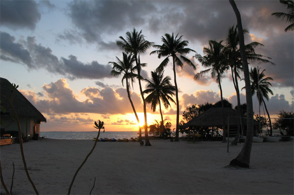 Прилетели на Ган. Это небольшой островок, на котором непонятно какими путями помещается посадочная полоса. Там нас (целую группу различных пассажиров, едущих на Хератеру) встретили, отобрали багаж, посадили на автобус и повезли к катеру. Потом еще минут двадцать на катерах (они плывут очень быстро, а если учесть, что сверху над скамейками только тент, - мощный встречный поток воздуха создает очень своеобразные ощущения) - и наконец-то мы на месте! С момента выезда в аэропорт прошли практически сутки - несколько напряжное развлечение.