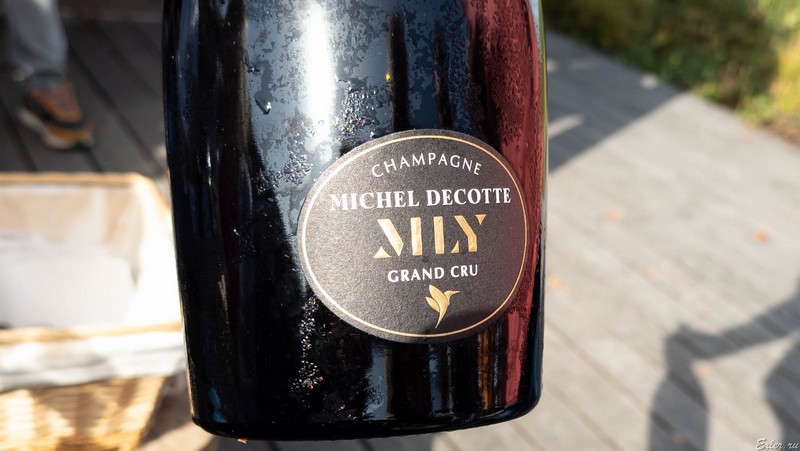 У нас для дегустации было три магнума: хорошее, но ничем не выдающееся розовое шампанское Jean Paul DEVILLE Cuvée SAPPHEIROS Brut Rosé, второе - значительно более интересное Jean Paul DEVILLE, Cuvée Agape, а третье было вот это гран крю от Micjhel Decotte, которое мы назвали "МЛЯ", и это вообще бомба!