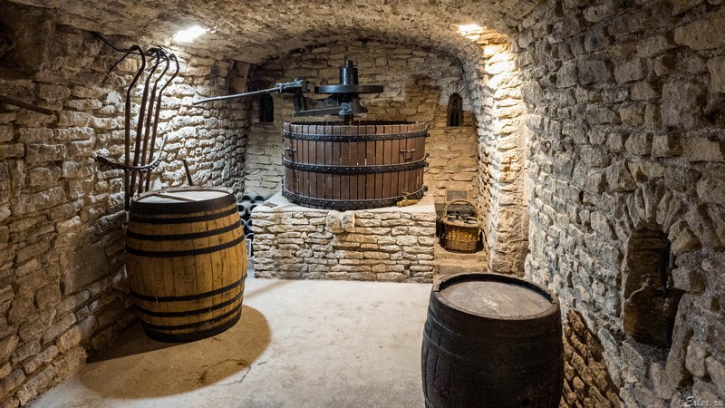 После дегустации нам показали подвалы хозяйства - раньше это были склады монастыря. Там хранится старинный пресс для отжима.