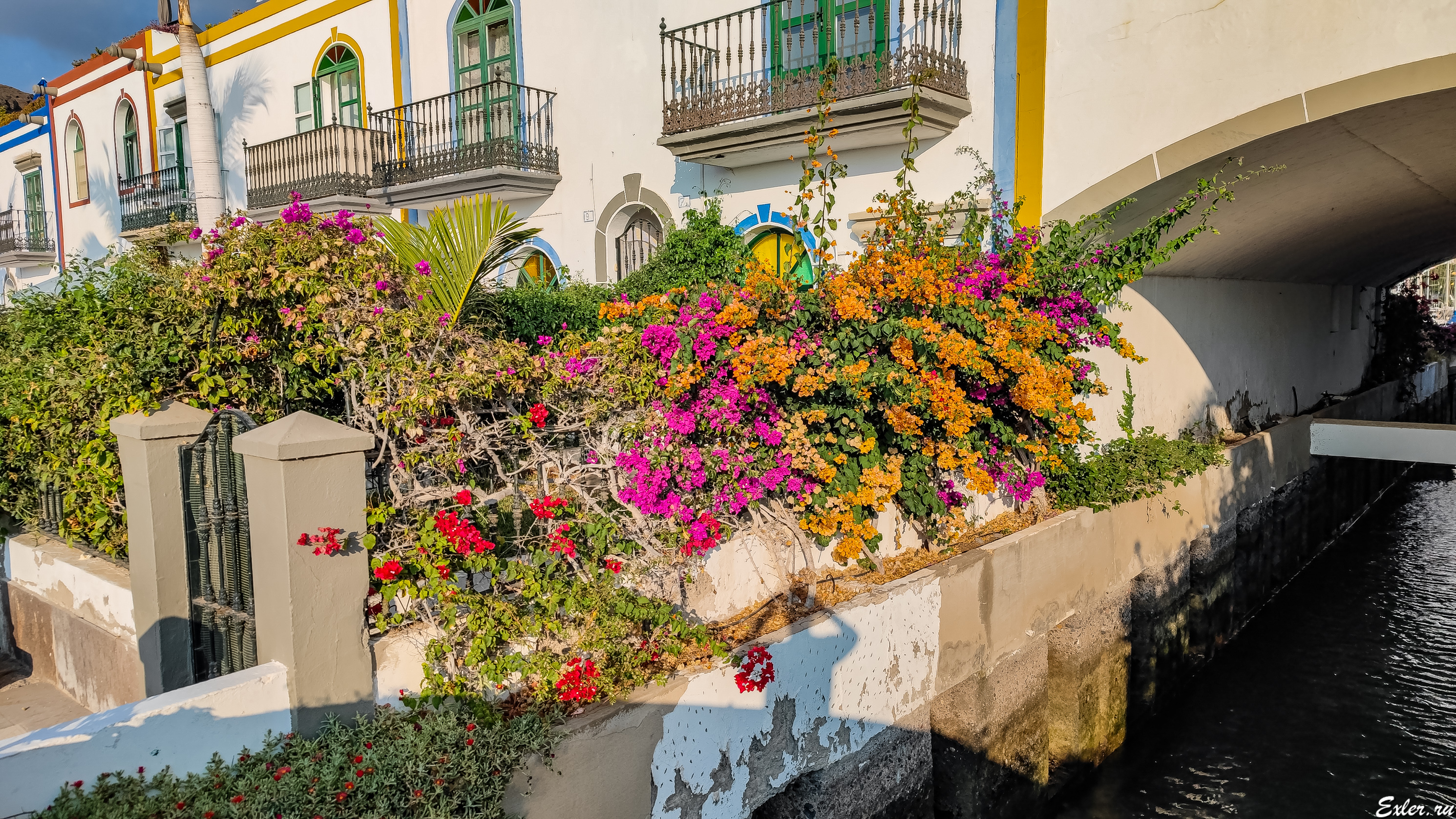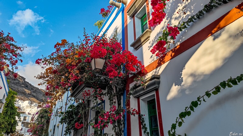 Типичный стиль Пуэрто-де-Моган: белые домики, характерные для юга Испании, и много ярких растений - в основном бугенвиллий.