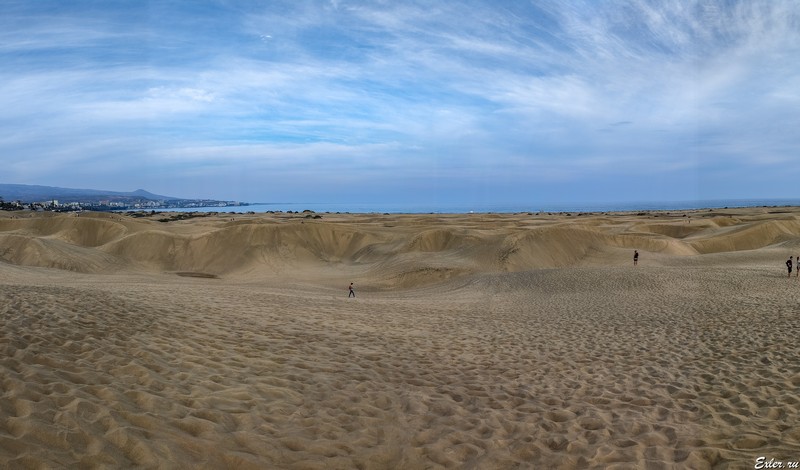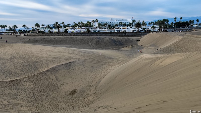 Дюны Маспаломас (Dunas de Maspalomas) - уникальное место, расположенное прямо на юге Гран-Канария в городе Маспаломасе. Это такая мини-пустыня площадью примерно в 403 гектара с песчаными дюнами, у которых постоянно меняется ландшафт.