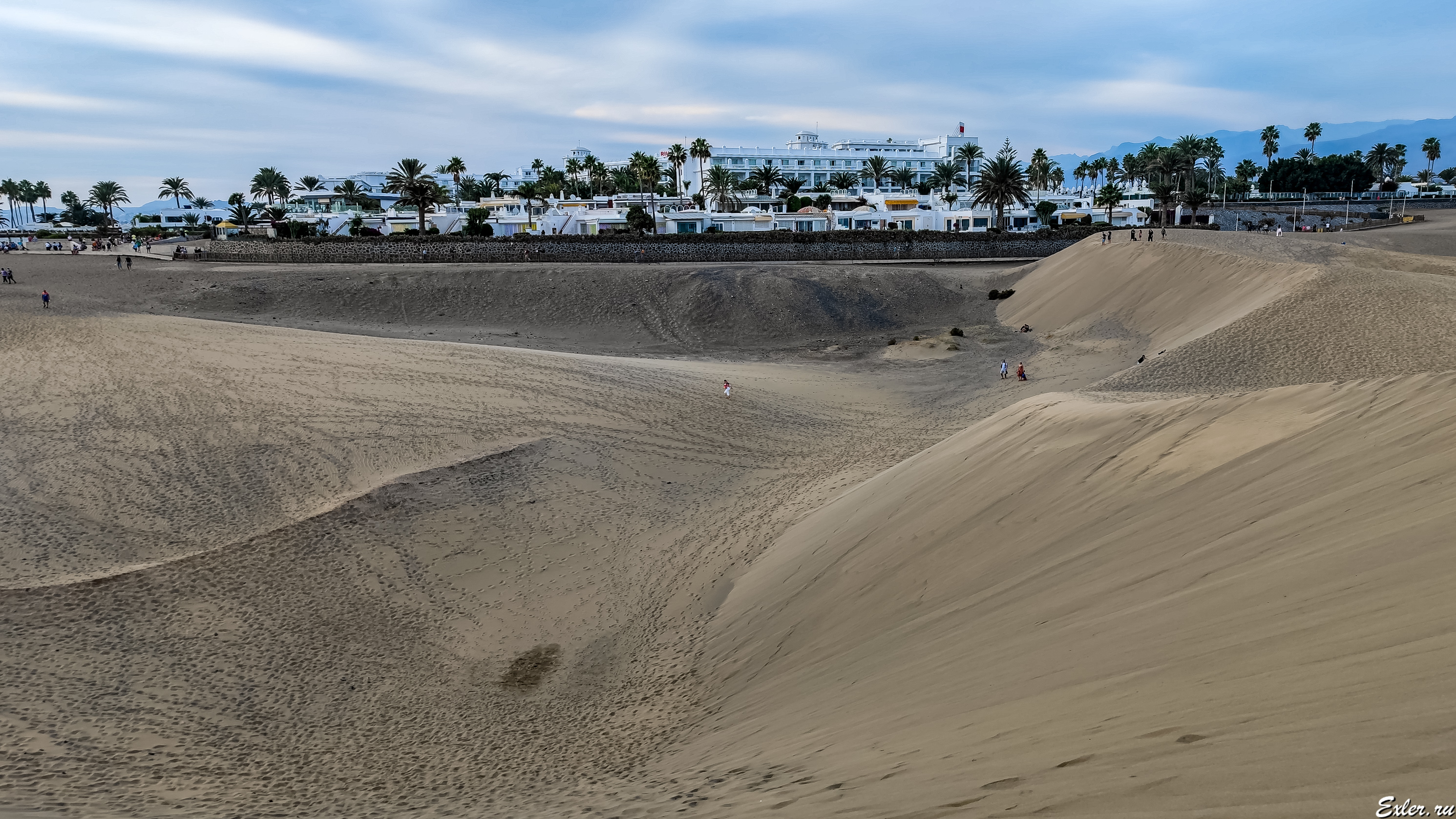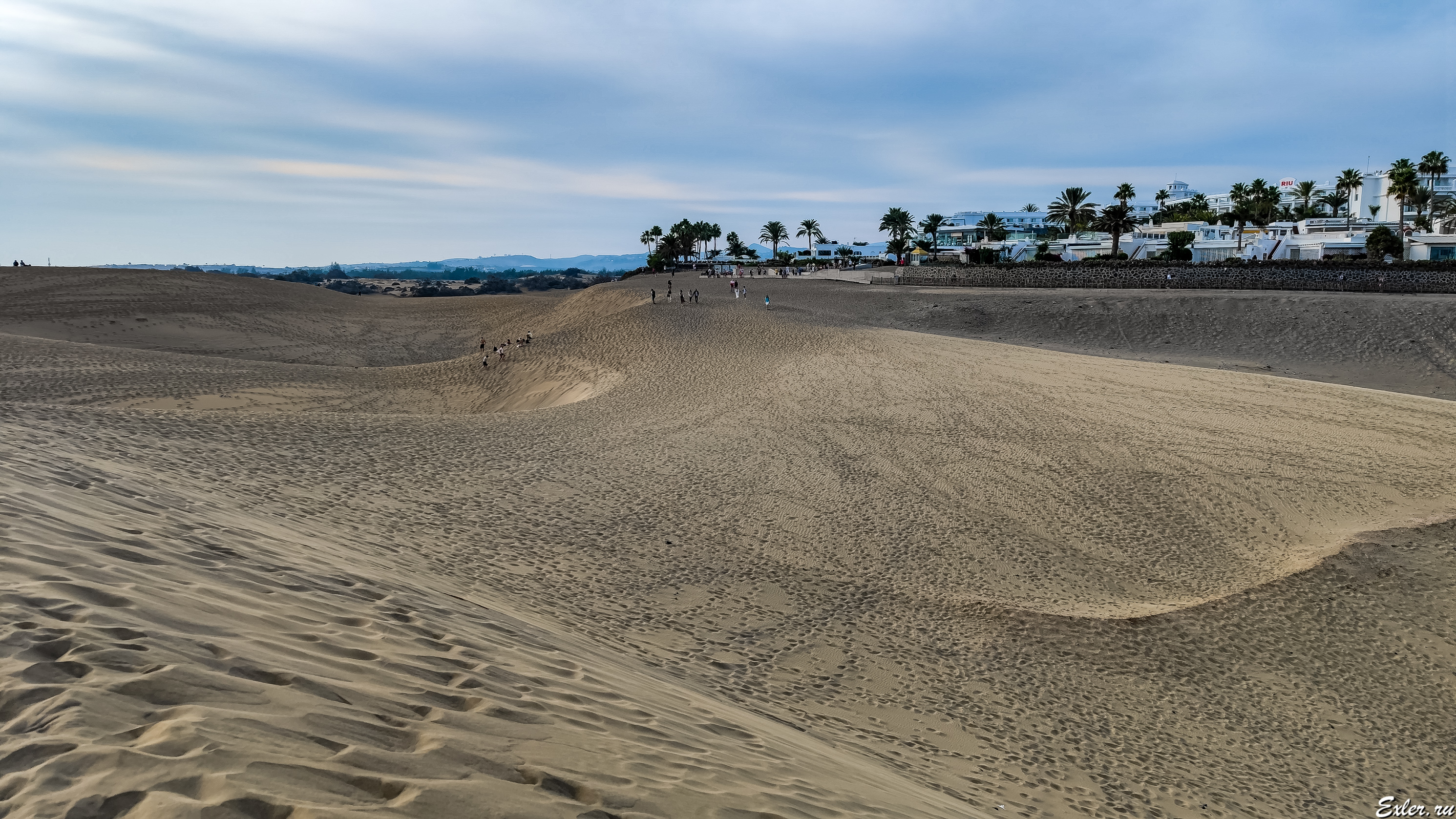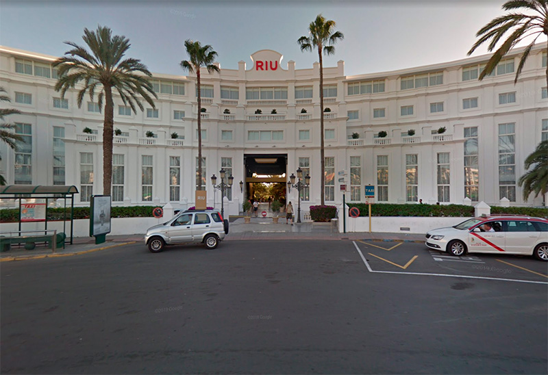 Чтобы посетить дюны, нужно приехать вот сюда, к зданию Hotel Riu Palace Maspalomas, и там пройти через галерею, которая ведет к обзорной площадке.