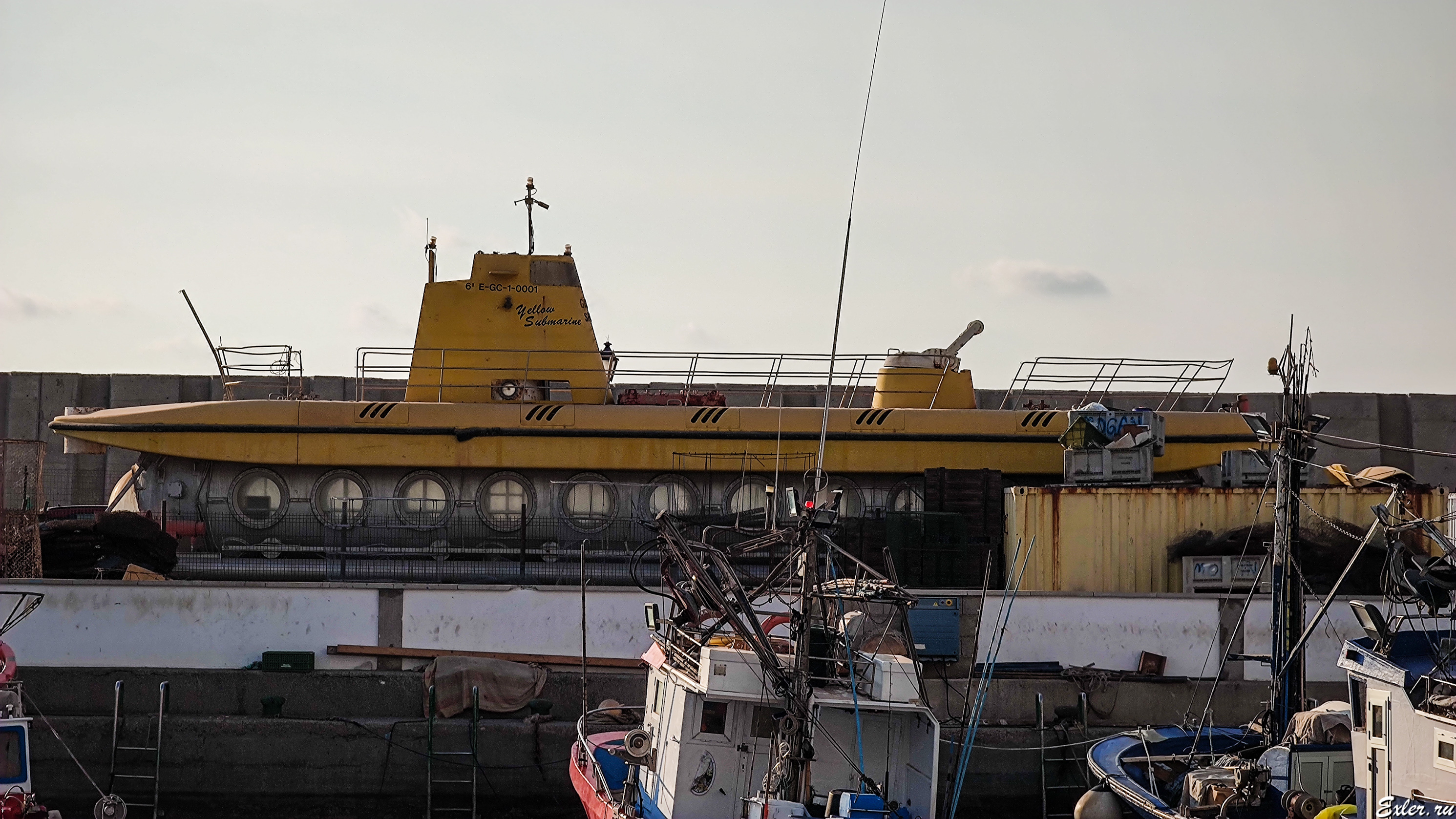 Да-да, именно желтая подводная лодка. Я читал, что на ней катают туристов. (Или раньше катали, потому что лодка стояла в доке.)
