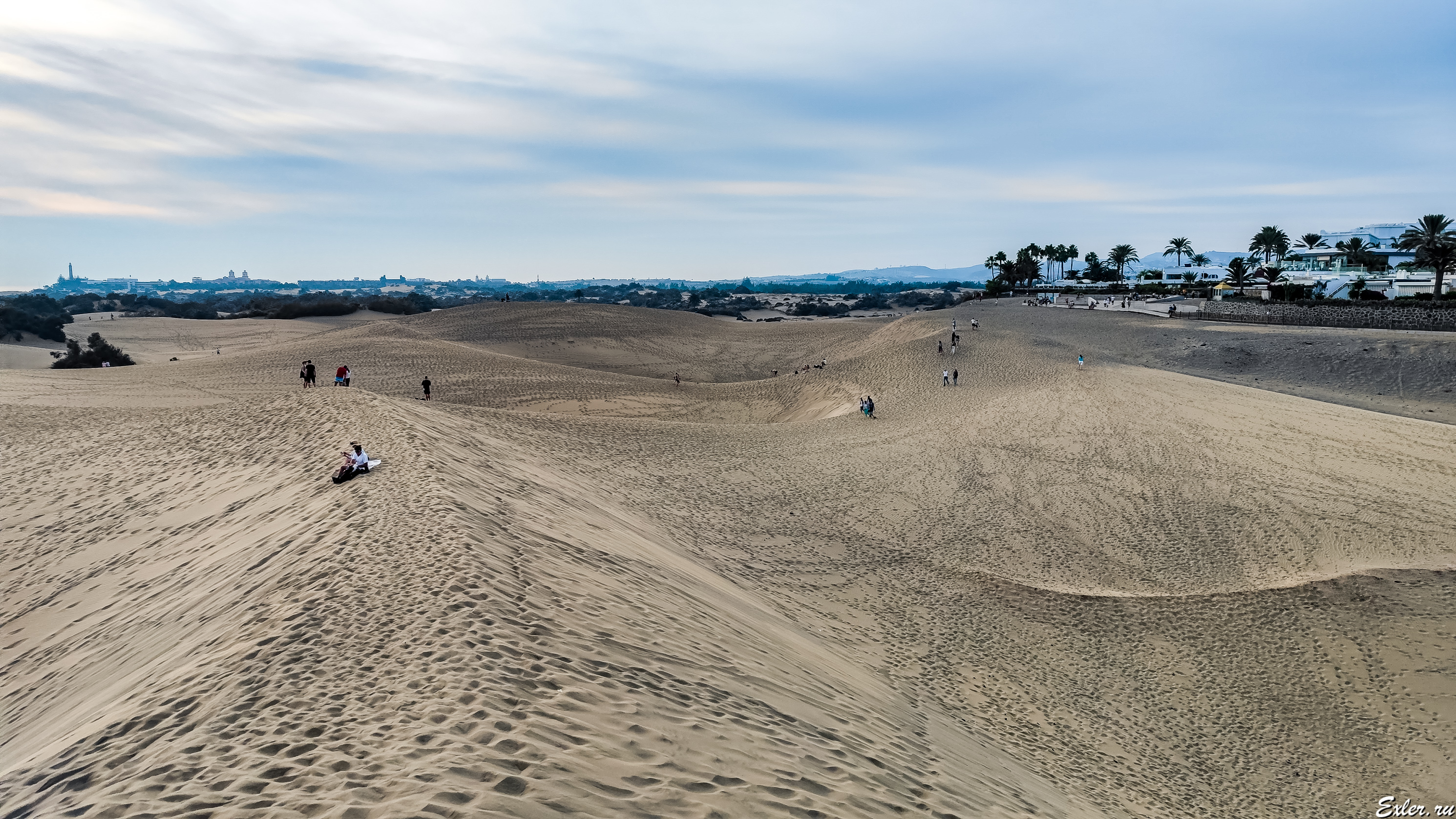 Это я снимаю с одной из самых больших дюн: вот там, где видны люди у пальм, расположена обзорная площадка.