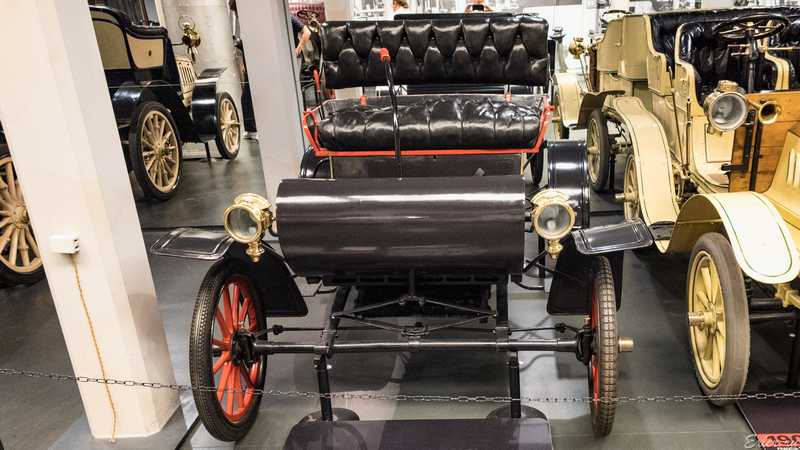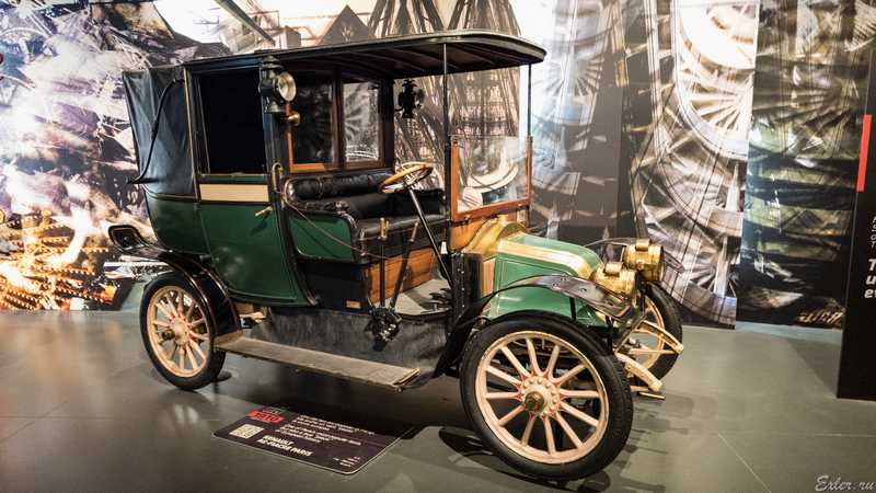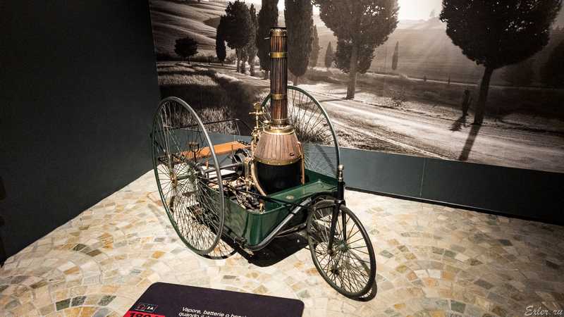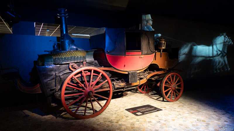 Начинается зал истории автомобилей вот с такой кареты, которая уже и не карета, а фактически автомобиль, так как у нее есть паровой двигатель.