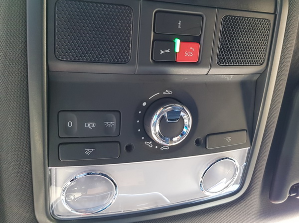 Вот эта кнопочка SOS - от входящей в России в стандартное оснащение система ЭРА-ГЛОНАСС. В случае если при аварии срабатывает защитное оборудование, автомобиль устанавливает голосовую связь и производит обмен информацией со специализированным аварийным контактным центром и передает туда все необходимые данные. Сотрудник контактного центра инициирует наиболее актуальные меры помощи и при необходимости направляет на место аварии автомобиль спасательной службы. Водитель или пассажиры также могут самостоятельно осуществить экстренный звонок при помощи этой кнопки SOS.