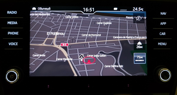 Однако с модели 2017 года Octavia штатно комплектуются очень комфортным сенсорным восьмидюймовым дисплеем. Дисплей очень качественный, имеет хороший запас по яркости и эффективный антибликовый фильтр: даже на прямых солнечных лучах изображение тут хорошо различимо, а я видел немало автомобильных дисплеев, которые в такой ситуации ощутимо слепли.