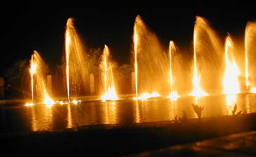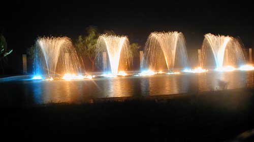 Ровно через полтора часа началось шоу. Однако туристы его так долго ждали, что первые десять минут на фонтаны вообще никто не обращал ни малейшего внимания. Туристы бродили взад-вперед, фотографировались и пытались получить заказанные напитки. Однако Катя проявила активность и несколько раз объявила, что вон те цветные струйки, оргазмически подергивающиеся под звуки музыки - и есть те самые танцующие фонтаны, которые являются целью нашего путешествия и венцом программы. Так что туристы потихоньку успокоились и попытались проявить интерес к этому шоу.