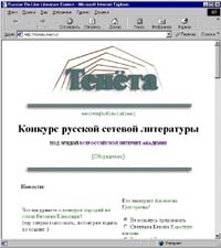 Кстати, если вы ни разу еще не были на сайте "Тенет" (http://teneta.rinet.ru), то загляните обязательно. Это самый мощный и популярный литературный конкурс в Сети, который организован и судится весьма известными сетевыми и офлайновыми писателями. Почитайте конкурсные работы и произведения победителей. Вполне возможно, что вы откроете для себя новые имена в литературе.
