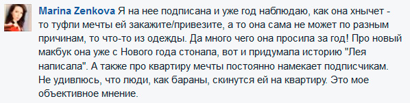 Другая часть милых дам, сопоставив количество и отзывчивость своих подписчиков с подписчиками Алины, возмущались, потому что понимали: если они объявят сбор средств, то в действительности вряд ли хоть что-то получат.