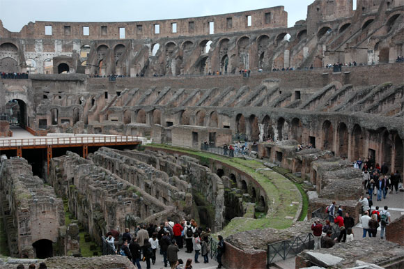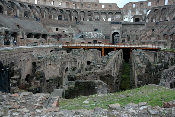 Под ареной размером 76х46 м располагался еще один подземный этаж, в котором находились различные хитрые механизмы и клетки для зверей. Устройство арены было настолько сложно, что позволяло заливать ее водой и разыгрывать всякие представления - на потеху, разумеется, римской черни, кому же еще...