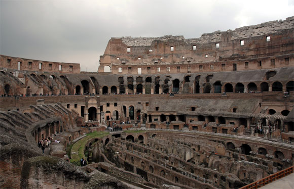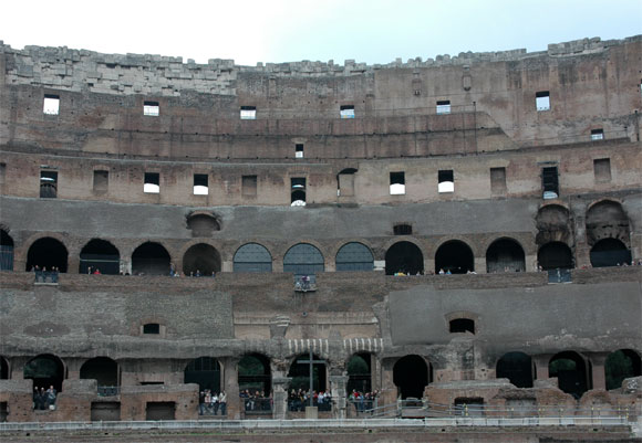 Амфитеатр делился на этажи и секторы, каждый из которых был закреплен за определенной категорией граждан. Самые лучшие секторы отводились знати (которые, вот несправедливость, еще имели право бесплатного входа), а остальные распределялись по родам занятий: торговцы, гончары, скульпторы и так далее. Всего Колизей вмещал порядка 70 000 человек.