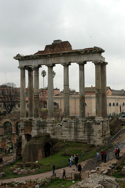 Еще одна знаменитая колоннада, которую часто можно видеть на открытках - остатки Храма Сатурна.