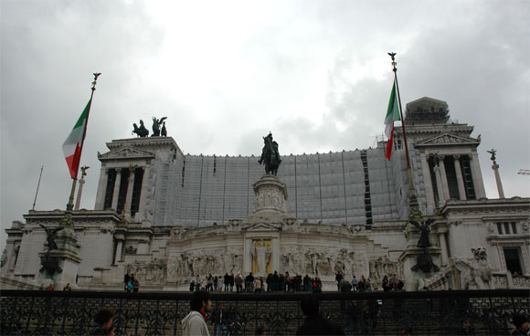Все, утомились ходить, поэтому решили сесть на какой-нибудь туристический автобусик, коих по Риму ходят тонны. Добрели от Капитолия до монумента Алтарь Отечества (Altare della Patria). Он находился то ли на реставрации, то ли на чистке - в общем, выглядел непрезентабельно.