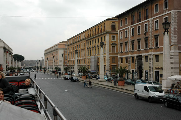 По Риму очень удобно кататься на двухэтажных туристических автобусиках. Их там штук пять разновидностей - всякие Green Line, Roma's Tours и так далее. Автобусики, во-первых, однотипные: на втором этаже большая открытая площадка, на которой много сидений, а на нижнем, закрытом, примерно в три раза меньше мест, а во-вторых, объединены в единую сеть - то есть билеты, купленные в одном автобусе, подходят ко всем остальным.