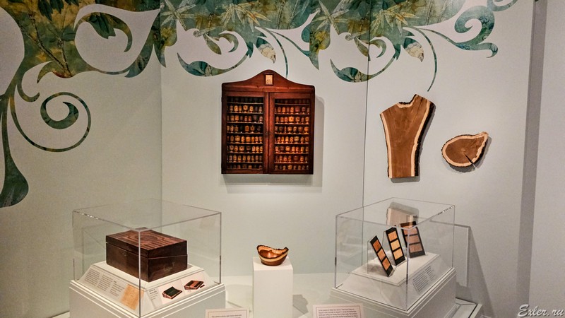 А это всякие образцы ценных пород дерева. Краснодеревщики с такими приходили к заказчикам, и те выбирали оттенок, который им нравился.