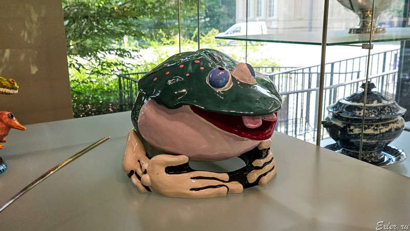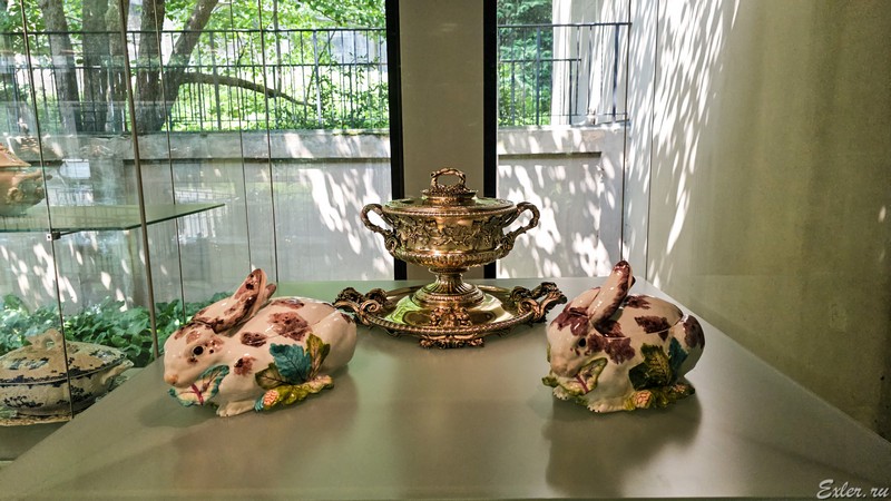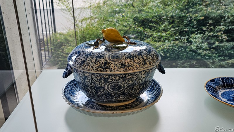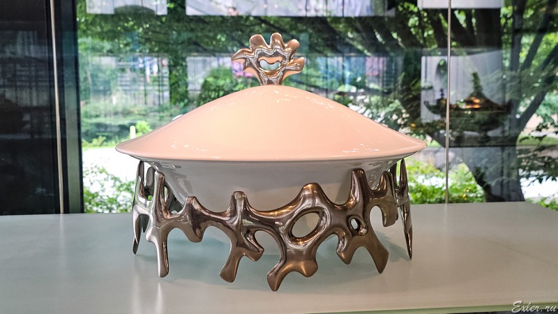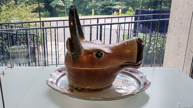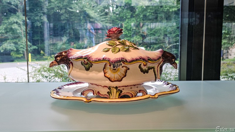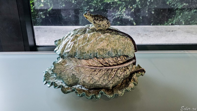 Вышли на улицу и отправились к коллекции суповых мисок - она находится в стеклянном павильоне справа.