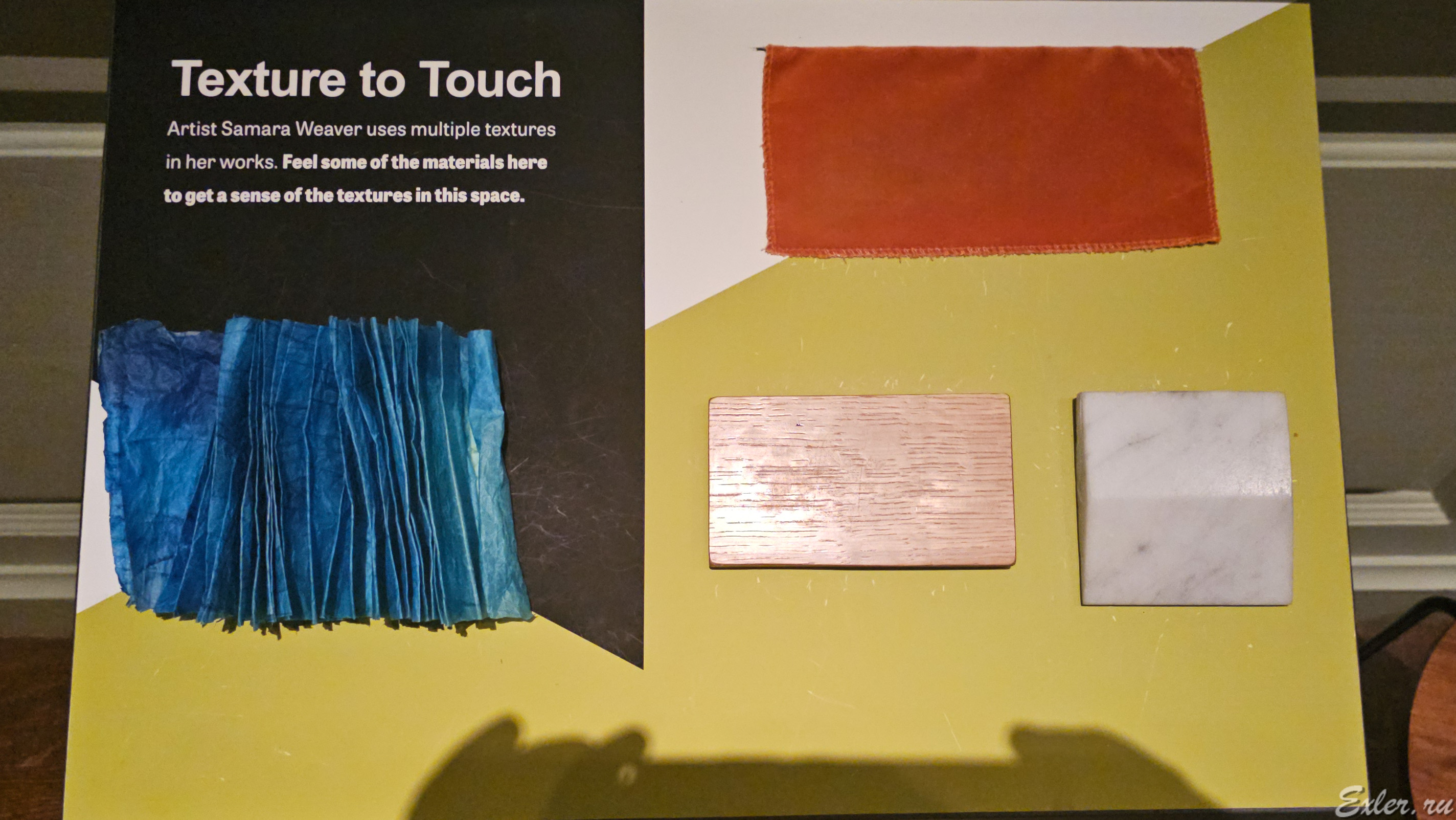 Тоже для детишек: ткани, кусочки дерева и мрамора - чтобы помацать.