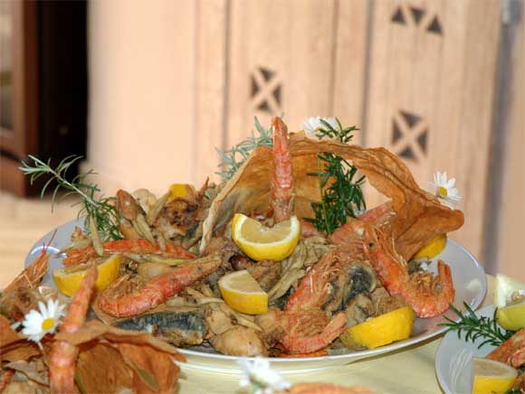 Alex Exler: В данном случае это был просто большой набор обжаренных в кляре морепродуктов, который подавался вместе с сардинским хлебом - нечто вроде мацы или здоровенных чипсов из пшеничной муки.