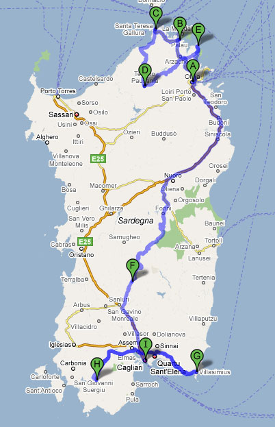 Наше путешествие было спланировано следующим образом (излагаю сокращенно). Прилет на север области в Olbia, посещение гробниц гигантов, экскурсия по Porto Cervo, тур по Capo Testa, Palau, экскурсия на архипелаг La Maddalena, исторический центр Tempio Pausania, переезд к югу в Barumini и осмотр Su Nuraxi, затем совсем на юг - Villasimius, San Giovanni Suergiu, ну и вылет из Cagliari в Москву. Так что мы сумели более или менее посмотреть и север, и юг.