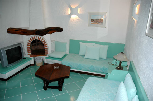 Отель небольшой, но очень уютный. Отдельного главного здания с номерами там нет вообще, а все номера представляют собой коттеджики, выполненные в типичном сардском стиле - беленые стены, деревянная мебель и так далее.