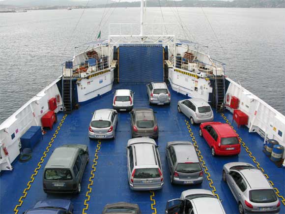 Добраться до Маддалены можно из Палау на пароме - примерно таком же, на котором мы плавали до Эльбы. На основной палубе парома располагаются автомобили и автобусы, а на второй палубе едут люди - там всякие сиденья, кафешки, телевизоры и так далее.