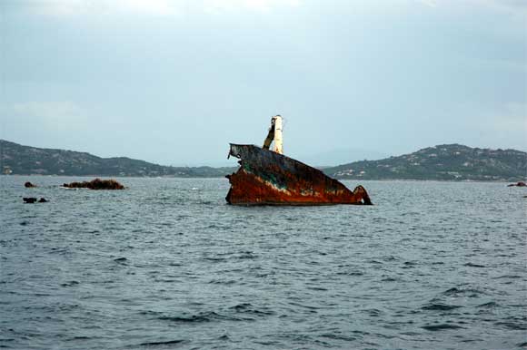 Плыть до острова, как выяснилось, вовсе не пять минут (морские расстояния на глаз - они обманчивы). Мы ехали порядка получаса, но зато хорошо рассмотрели берег и всякие достопримечательности. Главная достопримечательность - остатки вот этого корабля.