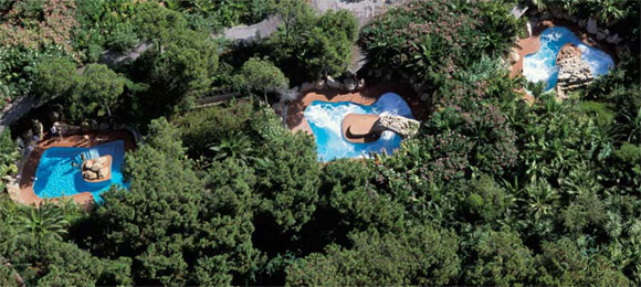 Смотрится весь комплекс, конечно, фантастически. Огромный тропический парк с очень разнообразной и прекрасно ухоженной растительностью, расположенный на берегу Средиземного моря. На территории комплекса восемь отелей - четыре пятизвездочных и четыре четырехзвездочных.