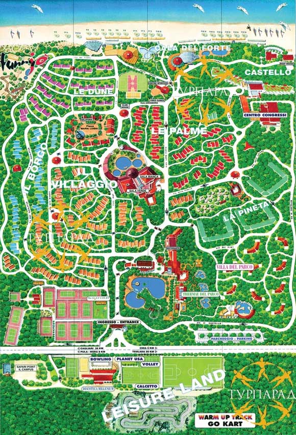 Центр занимает довольно большую площадь недалеко от ресепшен всего комплекса, и есть один-единственный отель под названием Villa Del Parco, который имеет туда собственный отдельный вход.