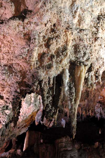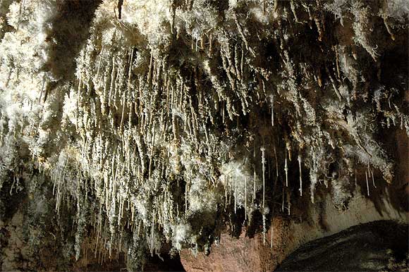Cоздавались эти пещеры недолго - примерно 600 миллионов лет. Водичка капала, капала и накапала вот такую красоту. Некоторое время из этих пещер добывали оникс, но потом вмешались какие-то организации, после чего из пещер создали музей. Температура там 16 градусов, проложенная через различные залы тропа тянется на 500 метров, а вокруг - сплошные кристаллы, нитеобразные отложения, сталактиты, сталагмиты и прочие сталагматы. На самом деле - безумно красиво. Нам повезло - там было очень мало народу, и можно было поснимать. По пути встретились только две другие экскурсии. Причем обе состояли из русских. Почему одни соотечественники - понятия не имею. Ученым еще только предстоит объяснить этот загадочный факт.