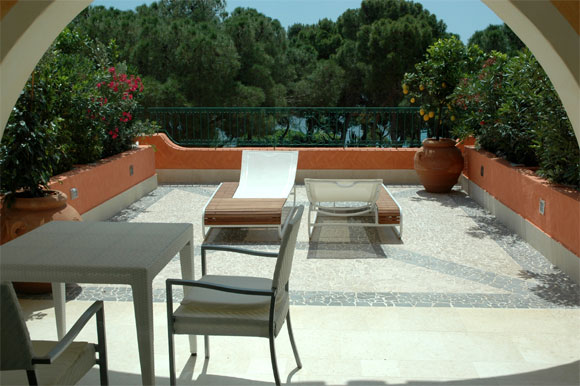 Это большие номера на специальном этаже Castello, куда идет собственный лифт и есть свой собственный ресепшен. (Чтобы VIP-гости этажа не смешивались со всяким плебсом в нижнем ресепшен.) У каждого номера панорамная терраса с обзором в 270 градусов. Выглядят примерно так.